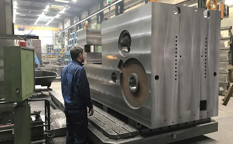 We have 9 boring-mills (including 3 with sliding stands). Intended for machining large parts, these machines have a load capacity of up to 20 tonnes. The diameter of the boring spindles ranges from 100 to 130 mm (X-axis displacement from 1,100 to 14,000, Y-axis displacement from 1,000 to 3,500, Z-axis displacement from 800 to 1,500). The dimensions of the rotary tables ranges from 1,000 × 1,000 to 2,200 × 1,800.